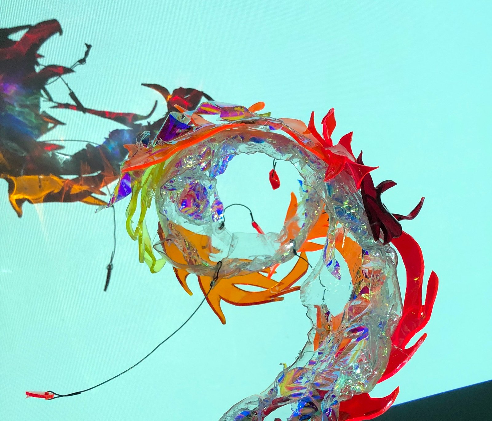 Essence of Flow 2, HD Video 60 secs 2021 Performative light art sculpture and background projection by Lorna Carmen McNeill, Movement and film by Luke Brown.